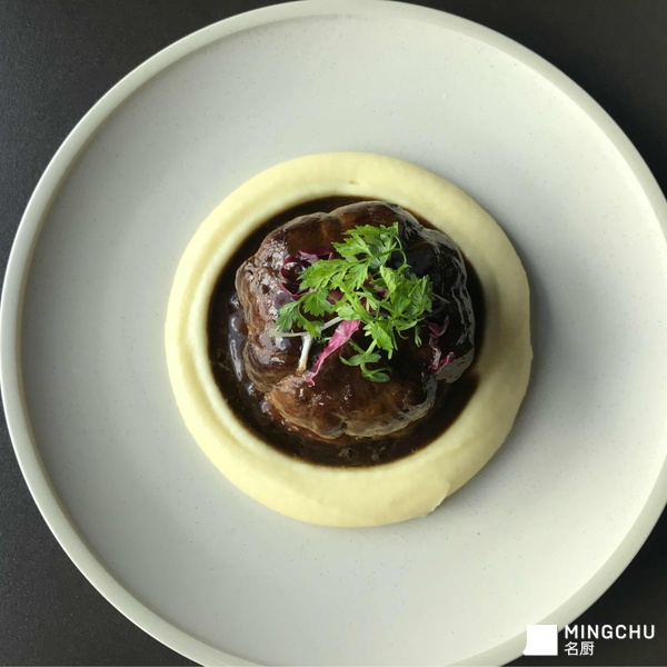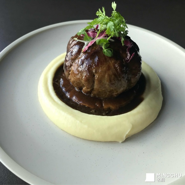 煎小牛肉卷配露杰鸭肝,焦糖菠萝,土豆泥及牛肉烧汁这道菜聚集了牛肉,猪肉及鸭肝,给主菜选择困难症的人来说我们提供了很不错的选择,这道菜的前期工作有点复杂而且费时,对厨师来说是个技术活,同时作为一道很传统的法国菜,我很乐意从法国主厨身上学到知识分享给大家。谢谢!/// Fried veal with Foie gras caramel pineapple, mashed potatoes and beef teriyaki sauce gathered this dish of meat, pork and duck liver, for the main course selection can people we provide a very good choice, the prophase work of the dish is a bit complicated and time-consuming, is a skill to cook, as a very traditional French cuisine at the same time, I would be happy to learn from the French chef to share for you. thank you!