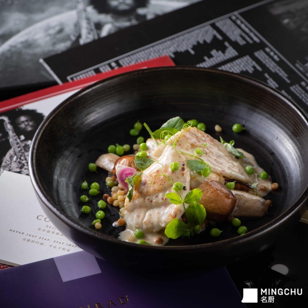 多宝鱼配上沙丁米佐红胡椒酱汁,层次丰富,口味融合。