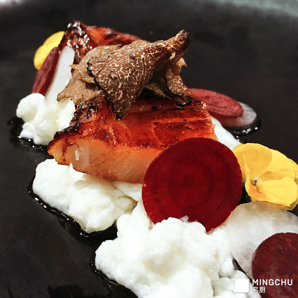 同时运用西式烹调和鲁菜元素。鳕鱼肉质鲜美,嫩滑爽口;蛋白与牛奶的融合,热锅冷油慢慢拨翻固形;搭配新鲜黑松露,是俘获味蕾的美味。