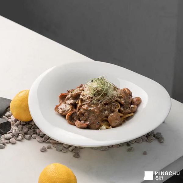 慢炖将羊肚菌与牛肝菌的风味极致发挥,完美融于一体风味十足,衍生出令人惊艳的绝佳口感。羊肚菌牛肝菌熬制四小时出来的汤汁风味十足搭配进口意大利菌菇风味扁面,意大利烤香肠和羊肚菌碎,奶油与松露酱。撒上帕玛森芝士碎和意大利松露油回味无穷。