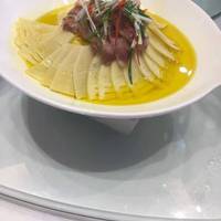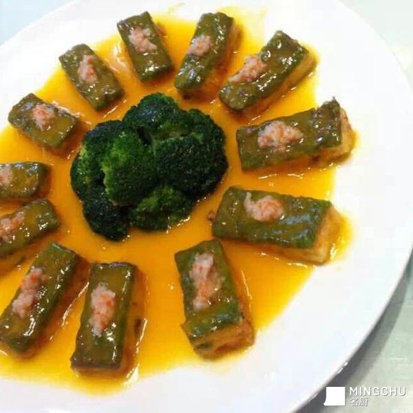 柔软口感中带有一丝菠菜的清香带有海鲜的鲜味,盖上金黄浓汤转变出一道时尚养身菜