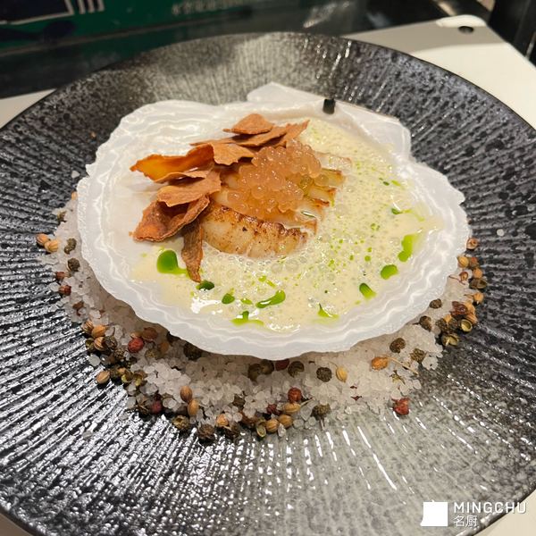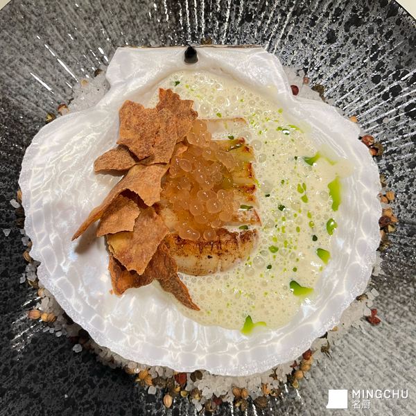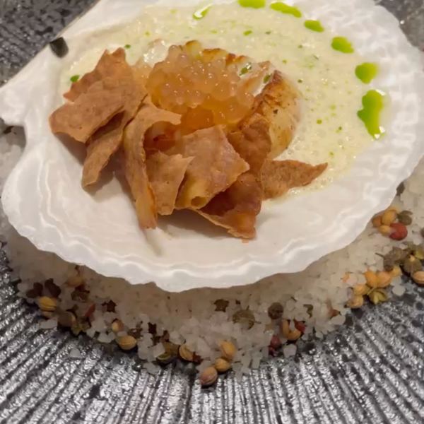 Sea scallop&Liquid Comte&Scallop crust&Dill oil&Yuzu gel