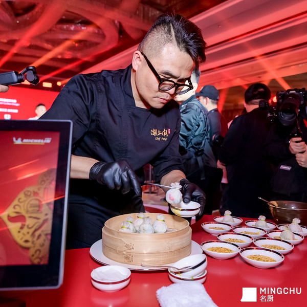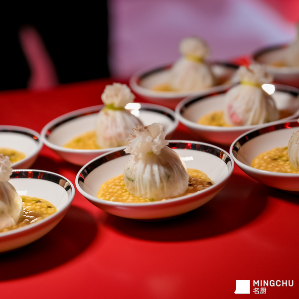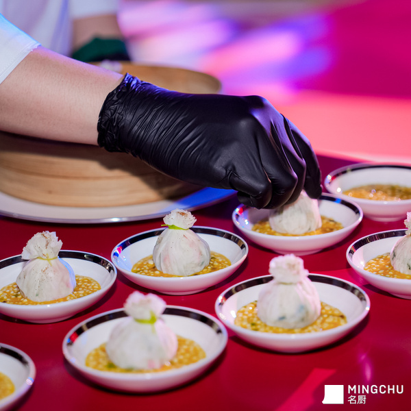 潮上潮主厨张一峰师傅,在杭州米其林指南发布庆典上,制作了菜品:芙蓉珍珠石榴球