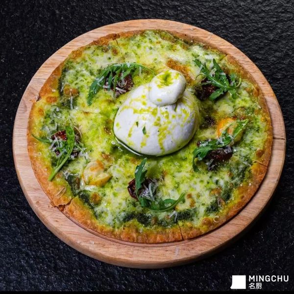 罗勒和油浸番茄和布拉塔芝士意大利经典中的披萨,这次融入一些中式元素,饼底采用脆壳烘烤吃起来脆脆尖尖感觉味蕾体验。