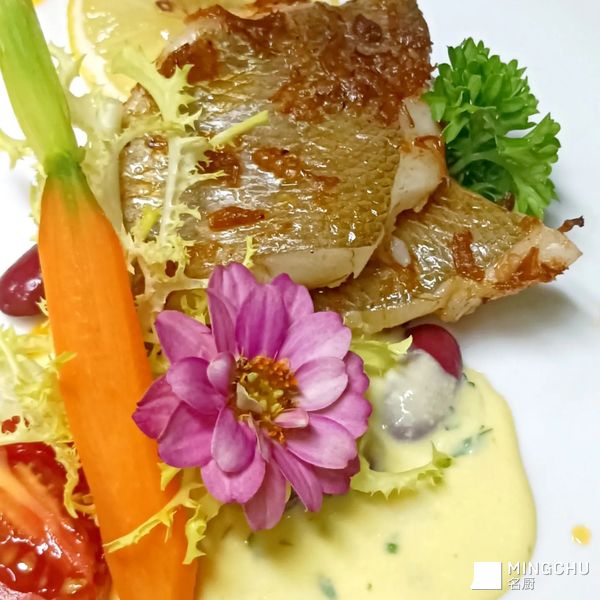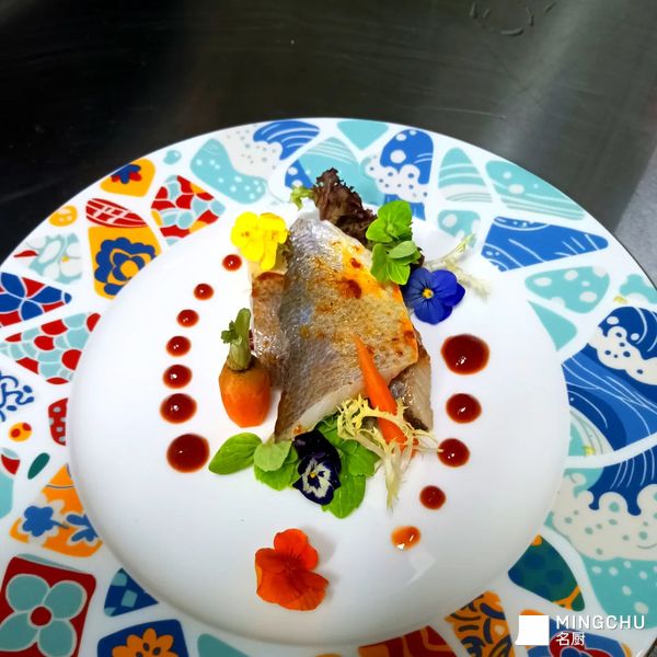 用中餐的海鲜食材,结合xo酱的鲜香,采用蒸的烹饪方式,让黄花鱼更鲜更嫩。再搭配西餐的忌廉奶油汁,让菜品更有复合味。 #盘中经纬·味觉的诗篇 #“名厨 Art”联名艺术餐盘 #第124期试用