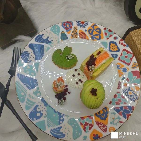 “浅滩”传递海边浅海场景个盘子相呼应,“珍味汇”概括多种高端食材,“甜菜鱼籽”强化视觉记忆点。 #盘中经纬·味觉的诗篇 #“名厨 Art”联名艺术餐盘 #第124期试用