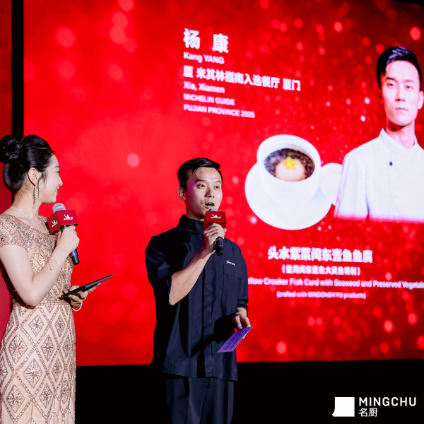 #2026北京米其林指南发布庆典#2026北京米其林指南 #名厨MINGCHU2026北京米其林指南发布庆典现场,特邀福建省米其林入选餐厅 厦餐厅 主厨 杨康带来《头水紫菜闽东壹鱼鱼腐》。