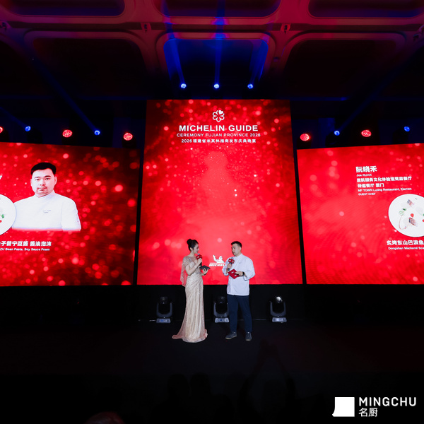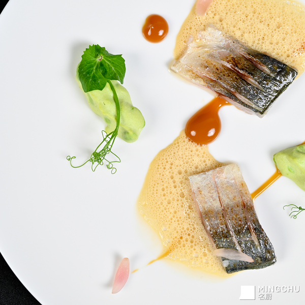 #2026福建省米其林指南发布庆典#2026福建省米其林指南 #名厨MINGCHU2026福建省米其林指南发布庆典现场,特邀厦门服务文化体验馆鹭庭餐厅主厨阮晓禾带来《炙烤东山巴浪鱼 柚子普宁豆酱 酱油泡沫》。
