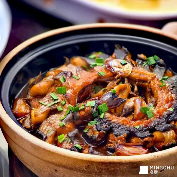 当油脂渗入砂锅的瞬间,便奏响了这道硬菜的序曲。鲜活鳗鱼以盘龙之姿卧于砂锅中,蒜瓣与秘制酱汁缠绵交融,小火慢焖让每一寸鱼肉都吸饱醇厚酱香。揭开锅盖的刹那,蒜香裹挟着鳗鲜直冲鼻腔,鱼肉入口细嫩无刺,酱汁浓稠得能裹住每一粒米饭,连垫底的葱段都吸满精华,一口便沦陷于这锅热气腾腾的鲜美。