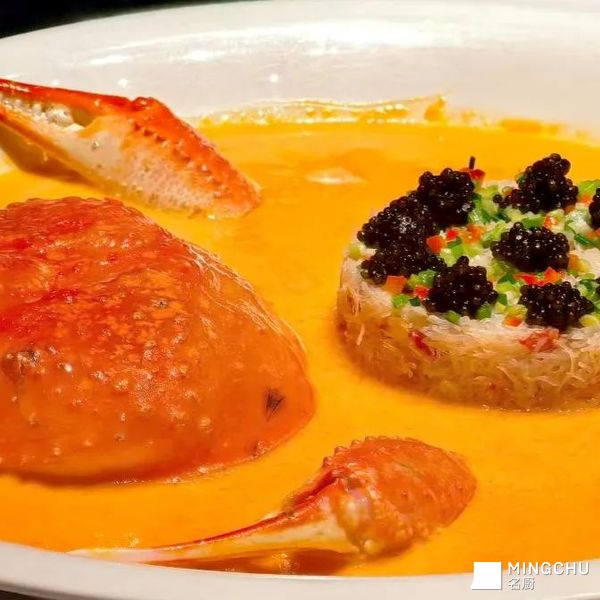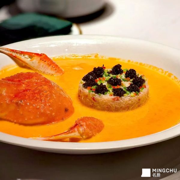 当松叶蟹的清甜邂逅鱼子酱的爆破感,再卧入如云朵般柔滑的芙蓉蛋中,每一勺都是三重鲜味的交响。蟹肉丝丝分明,裹着蛋羹的温润;鱼子酱在舌尖迸发咸鲜,瞬间点亮整个味蕾,仿佛将深海与云端的极致风味,一口纳入怀中。