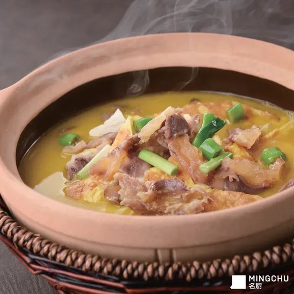 用猪头骨熬汤,取肉烹肴,砂锅为器,汤鲜味美。