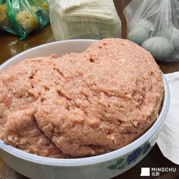 馄饨肉馅只放了大蒜大葱生姜冰水和肉一起绞包起来了。14 元/斤的猪肉+4 元/斤的馄饨皮约 40 张×2.5 斤+1.5 元/个的皮蛋×4 个=47 包了 N 个馄饨~