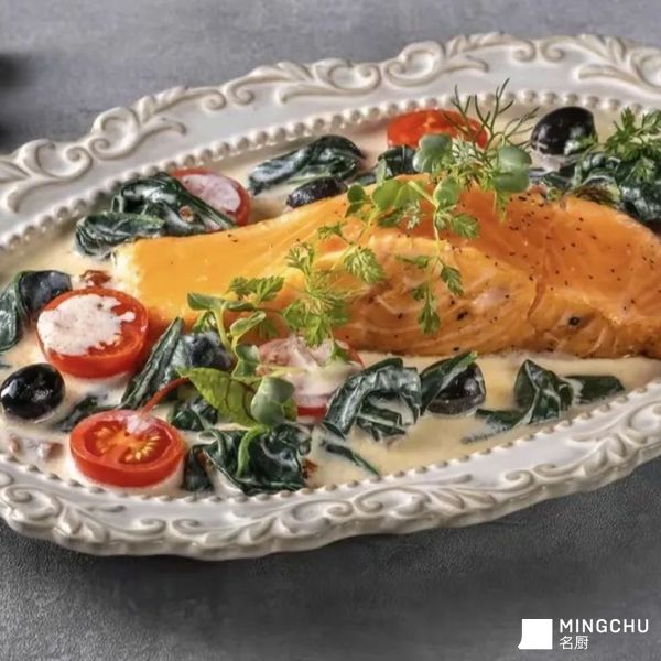 以三文鱼为核心,用奶油酱汁包裹,既保留了鱼肉的鲜嫩,又赋予其浓郁奶香。