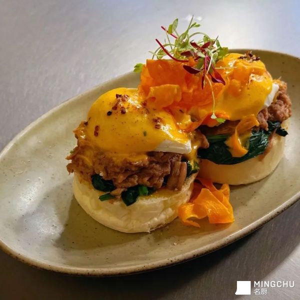 本菜品灵感源自经典班尼迪克蛋,但将传统火腿替换为加州烟熏手撕猪肉,赋予其地域特色与现代街头风味。打破传统早餐边界,将美式BBQ与法式精致料理结合,体现“混搭美学”。通过视觉呈现的层次感与味觉的多重冲击,传递“自由随性、不拘一格”的生活态度,鼓励年轻人在日常饮食中探索创意与个性表达。