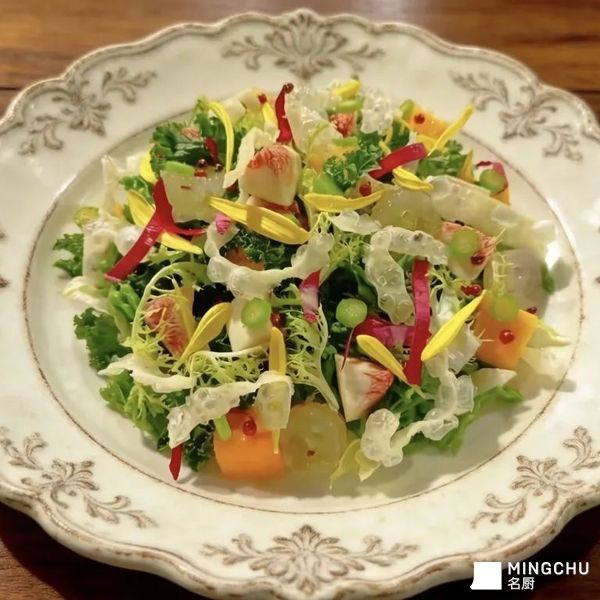 以云南特色乳扇为核心,突破传统吃法,融入轻食沙拉逻辑。将高原乳制品的醇厚与果蔬的清新碰撞,借油醋汁提亮风味,既保留地域饮食文化记忆,又契合现代健康饮食趋势,打造“传统焕新”的味觉体验。