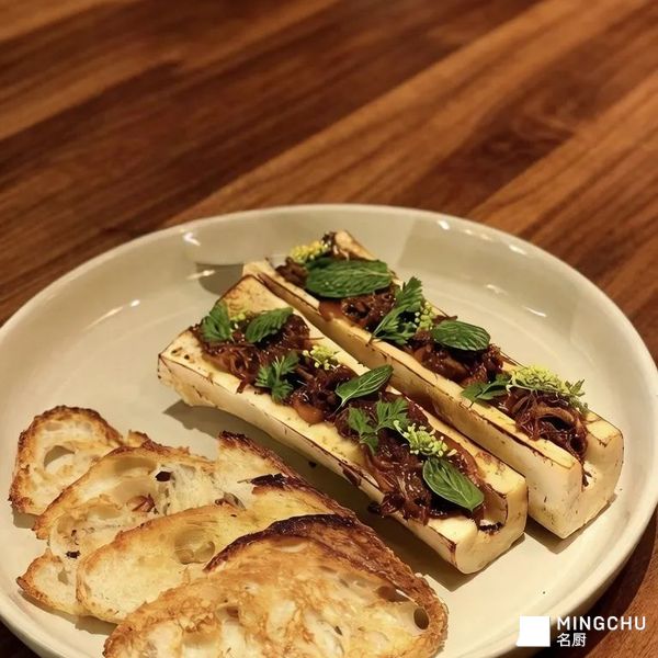 食材特点M7牛颈肉脂肪呈雪花状分布,肉质细嫩多汁、脂香浓郁;牛骨髓富含胶质,绵密醇厚;法式慢煮技法精准控温,保留肉汁与骨髓丰腴感,食材本味与质感兼具高级感。创意理念融合法式低温慢煮的精细工艺与焗烤技法,将牛骨髓的丰腴脂香注入M7牛颈肉,既保留和牛的细腻口感,又借焗烤激发骨髓香气,打破传统牛排烹饪边界,打造精致西餐体验。菜品特点外观上牛骨髓焗制后金黄流心,M7颈肉外微焦内软嫩,雪花纹理清晰;口感层次丰富,骨髓绵密裹挟和牛肉汁,脂香在舌尖化开,慢煮锁鲜与焗烤增香结合,风味浓郁且质感奢华。