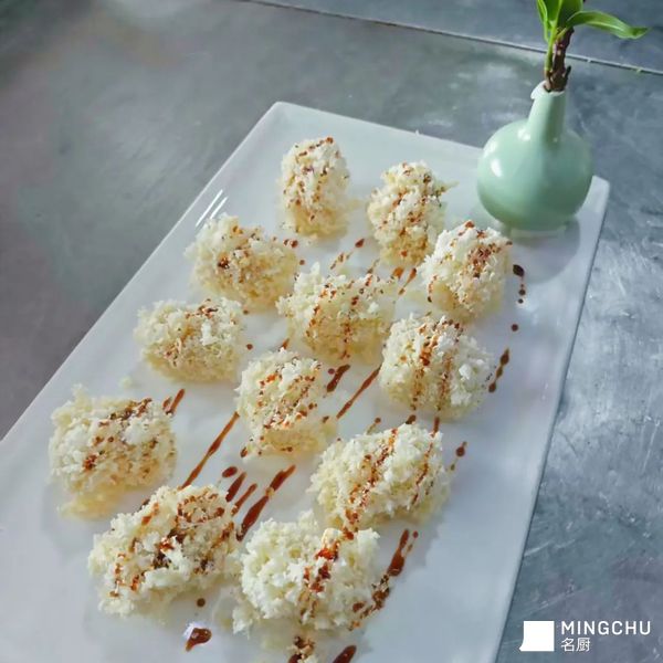 手工糍粑,也是四川一道特色小吃,在以前的糍粑中我加以改良,融入白色面包糠,入口外酥里面糍粑的面幺丝滑,和红糖汁撒入,增加层次感!