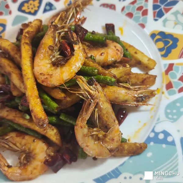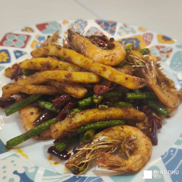 金黄酥脆酸奶油香葱薯条打,搭配外酥里嫩的大虾,经香辣底料爆炒,色泽红亮,麻辣鲜香,口感层次分明。