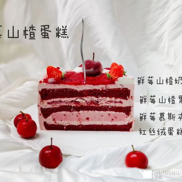 主打酸甜双味、清新解腻的味觉体验,以草莓、树莓等鲜莓的清甜果香搭配山楂的微酸解腻,中和甜度不齁口,搭配绵密红丝绒蛋糕胚,果香、果酸与奶香完美融合。整体口感温润绵密又带着果肉的清爽,酸甜平衡恰到好处,适配春夏季节、下午茶、少女系甜品、私房颜值爆款,颜值与口味双在线,老人小孩都喜爱。