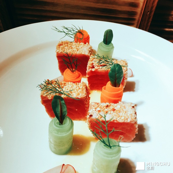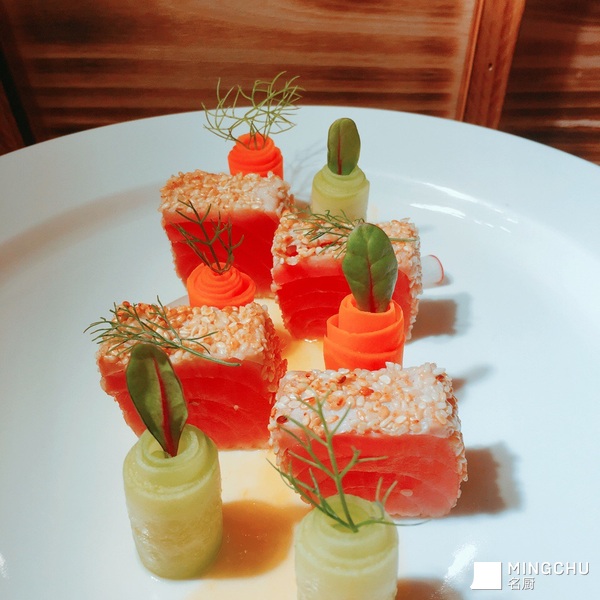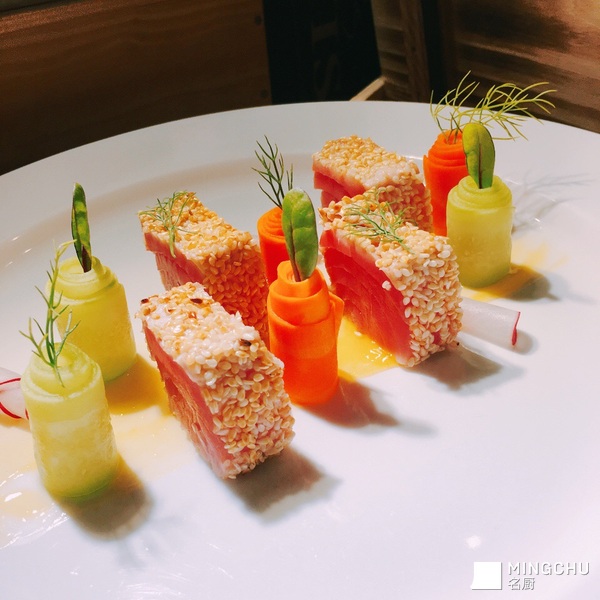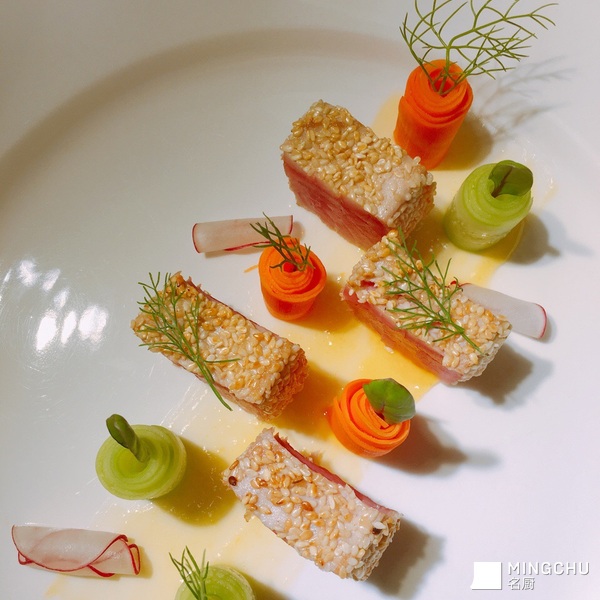 浅煎芝麻金枪鱼配橙汁酱