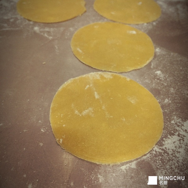 此款意大利云吞由三种芝士作馅料,由于芝士已有咸味,盐要控制小量,边试味边加