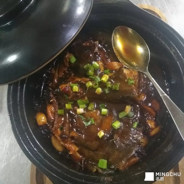 采用砂锅火局保持原料的原汁原味,丰富的胶原蛋白,一股特有的焦香味道,用花雕酒,而不是水,更好的提升了鲽鱼头的鲜香!蒜香浓郁,色泽棕红!