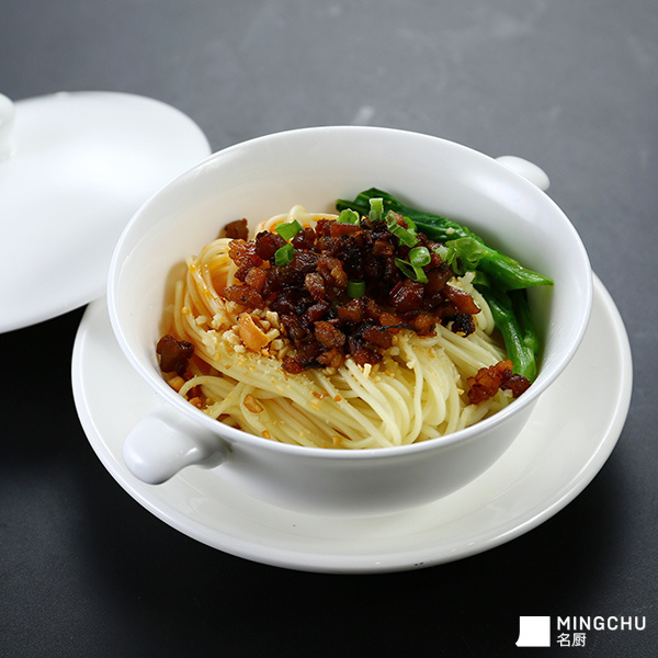 担担面起源于1841年四川自贡,已经有上百年历史,咸鲜微辣、香气扑鼻、麻辣爽口,此菜在四川广为流传,常作为宴席小吃。对于酒店而言,食材的精挑细选和做法的改良是关键,做法从原来基础上,保持它独特的风味,从选料、调味都调整成现代都市人健康食法,没味精、没以前那么油且保持原来的口感。