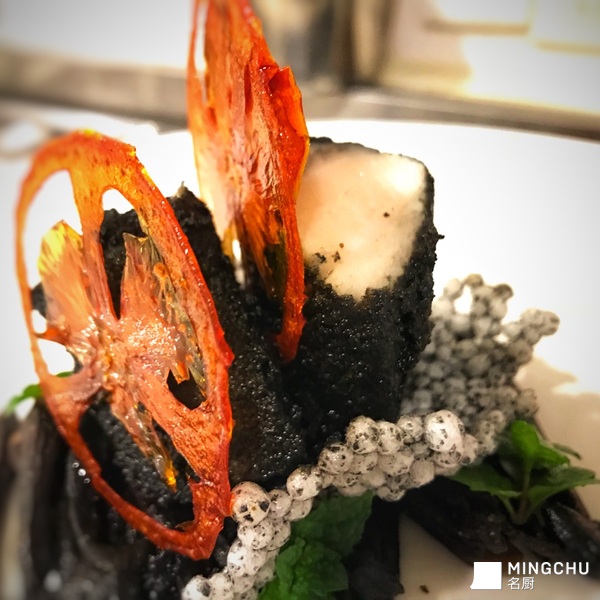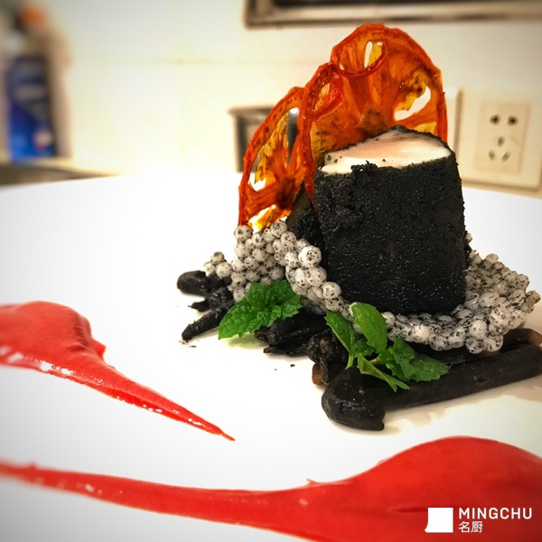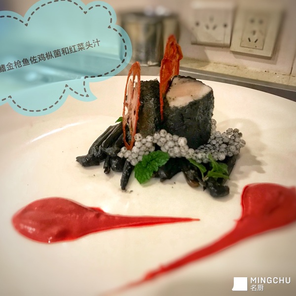 炭焗长鳍金枪鱼佐鸡枞菌和甜菜头酱