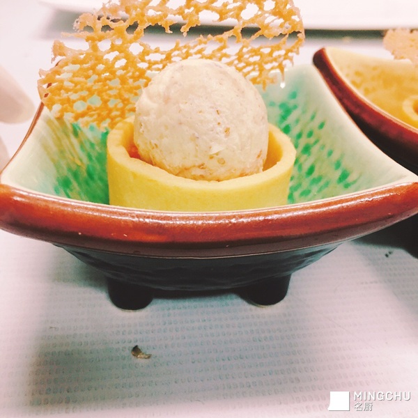 一到普通的西式小吃_由于奶油芝士口感会发腻_配以酸甜的芒果SaSa中和_简单而不失口感_刚好_另外感冷菜恩师陈师傅的指导以及不吝赐教