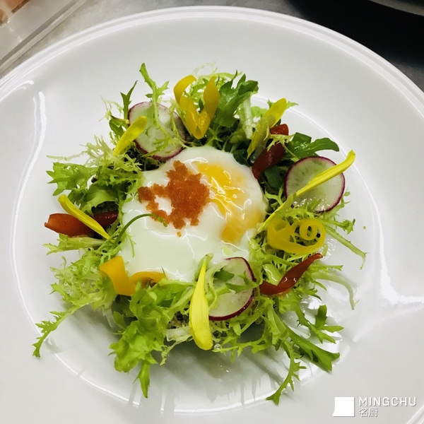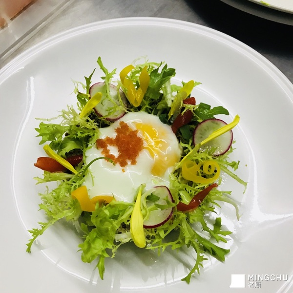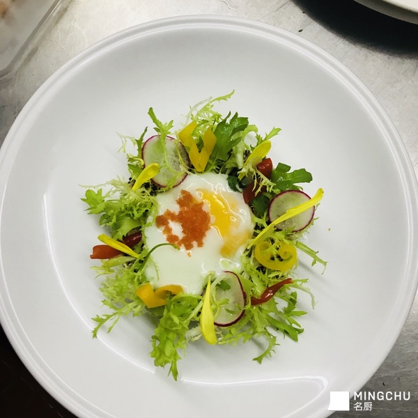 温泉蛋,牛油果杂菜色拉