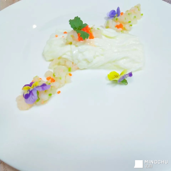 将传统的大良炒牛奶改变一下。用新的方式呈现出来。入口奶香,虾鲜,嫩滑。