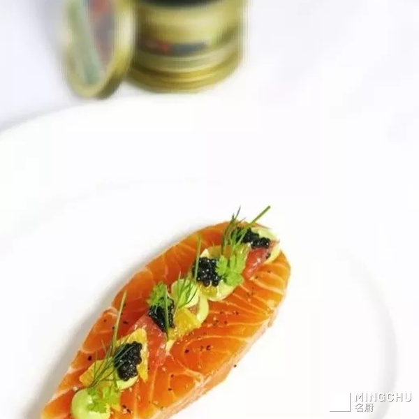 腌三文鱼配鱼子酱 牛油果酱,橙子,西柚