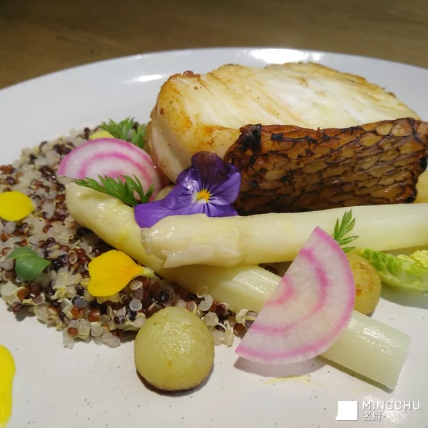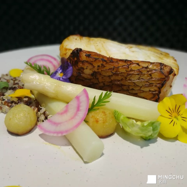 深海鳕鱼富含多重人体所需营养成份,鱼肉中夹杂鱼脂,最大程度保证了鱼肉的嫩度,鱼皮上色可以增加鱼的香气,藜麦入菜一直是人们所追求的一种健康饮食方式,两者搭配的口感很新颖,配上油浸土豆和芦笋,会体验到多种层次的口感!