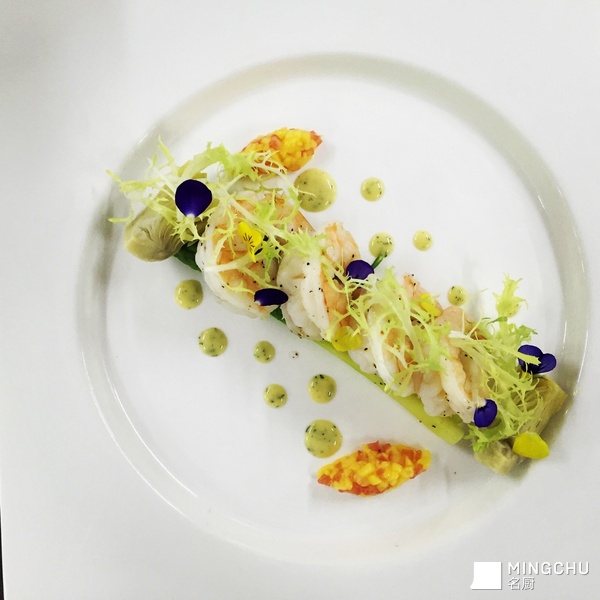 水煮大虾配芒果莎莎芥末蜂蜜汁