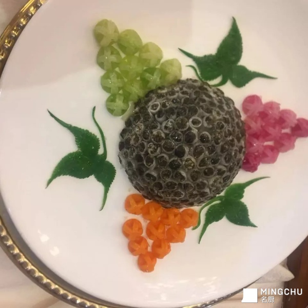 这道菜用我们当地的一个食材做的一个造型菜,技术要点那就是劵的时候一定要紧,放到碗里的时候也一定要挨得紧一点要不容易散。
