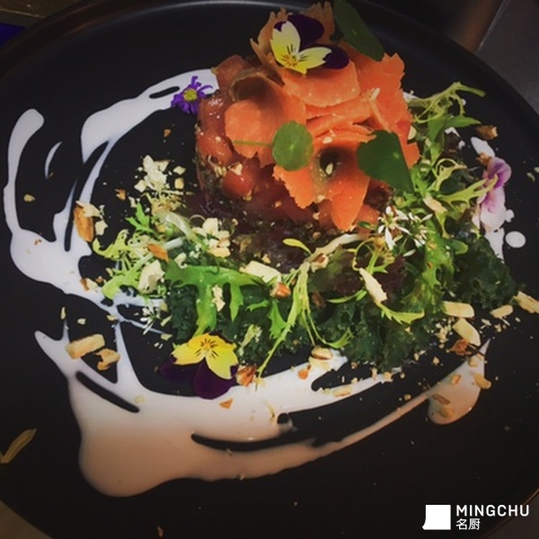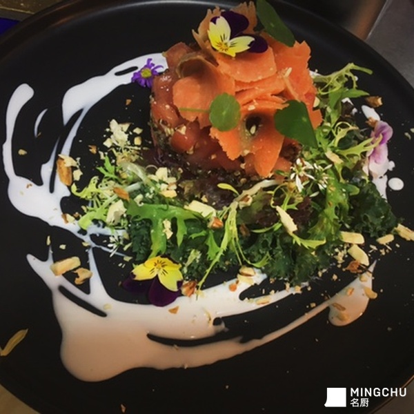 看过某大厨的金枪鱼土豆沙拉,食物的改变,另外加上一些装饰。总结就是乱来,哈哈哈