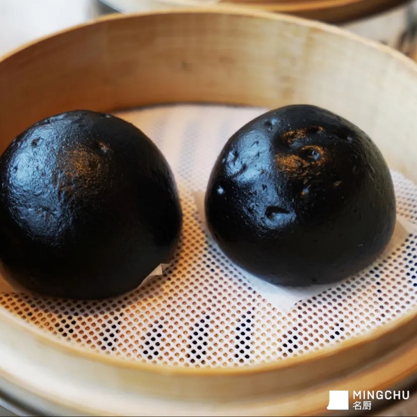 外观呈现酷黑色,表皮松软,轻轻咬开之后便可直观感受到流淌而出的咸蛋黄风味馅料,馅料细腻,几乎无颗粒感。