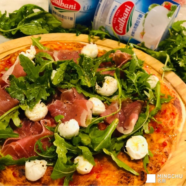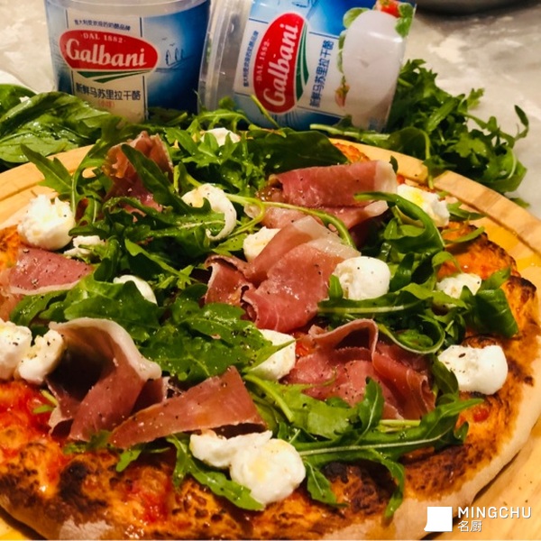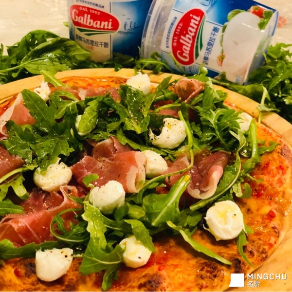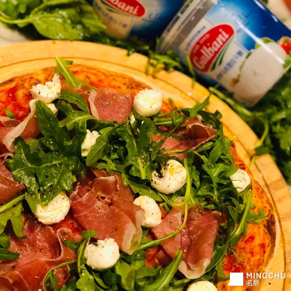 #第63期试用 #马苏里拉干酪 #格尔巴尼用意大利格巴尼马苏里拉干酪,搭配味道浓郁的意大利帕尔玛火腿,芝麻菜清新的味道,整体口感非常丰富,能品尝到食材本身的原味,更符合意大利传统披萨的特点