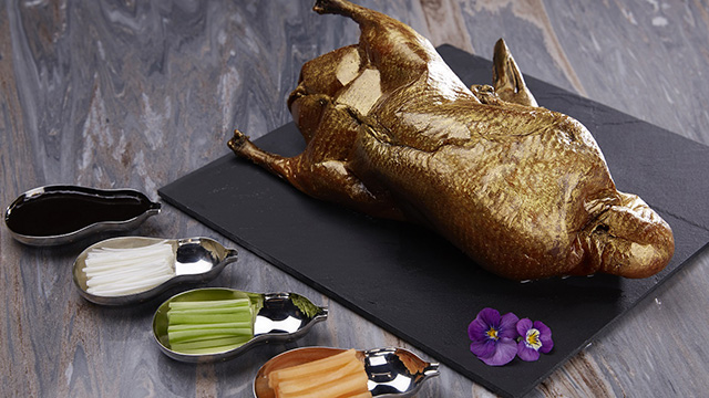 这道北京长安街W酒店出品的独一无二的金身片皮鸭,自面世以来,已荣登京城诸多美食版块,他们的目标是以此道菜品“耀动帝都”。艳餐厅团队严选2.2至2.3公斤的鸭中极品,颠覆传统工艺,调整火候与时间,在烤制过程中将极高品质的可食用金粉涂满鸭身并继续回炉,此工序极大考验厨师功力。飘香出炉的金身片皮鸭外皮酥脆,同时鸭肉松软多汁。