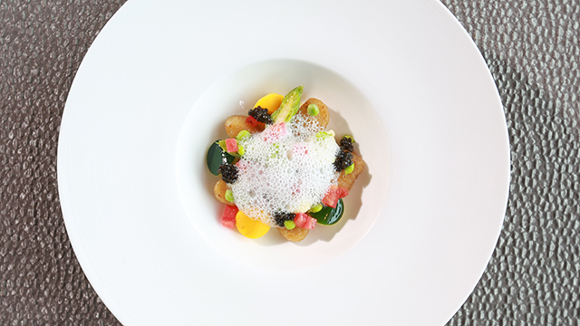 2.帕马森芝士泡沫下隐隐约约呈现出的菜品带来视觉上的美好体验。
