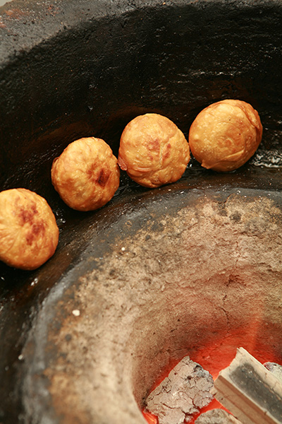 陶土炉膛:烘烤的炉膛用陶土制成,可以让锅盔渗出煎制时的多余油脂,由于温度特别高,最多烘烤1分钟。
