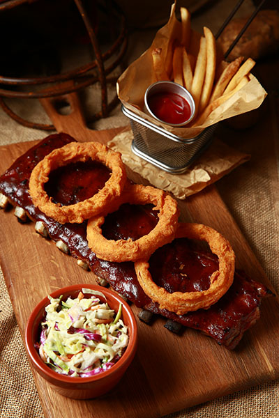 与其说这是一间美式风格的熏烤标配小馆,不如说更像是一间贩卖快乐与自由的地方。复古风的铁器、红蓝格子桌布、暖黄色的灯光、俏皮的牛仔靴、各式球赛的队服和奖杯、随处可见的木质结构,仿佛只要走进这件餐厅就能够自然热然地成为这里得一份子——自由、闲事和不羁的西部牛仔独行侠。