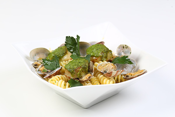 菜品4: 这道面食是为一家在上海的休闲法式餐厅“欧膳”创建的,它使用的是新鲜的海鲜,大蒜和香菜。