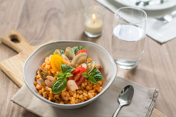 菜品6: Ebly是法国一种专门生产和来源的特殊小麦,在这个配方,我们搭配用海鲜和番茄酱。