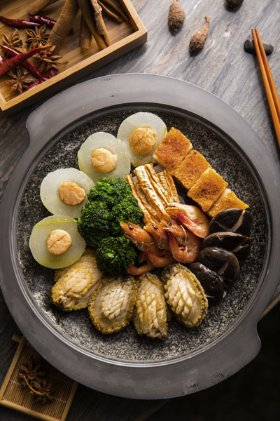 盆菜是一道粤式的传统名菜,因其“好味”亦有富足和团圆的好意头,一直是广东人逢年过节时团圆饭桌上必不可少的家宴菜。这个一月,来自香港的厨师长梁师傅为您奉上经典的土锅迷你盆菜,新鲜丰富的应季食材,经过数小时焖炖和精心烹调,便可一尝此粤式美味佳作了。