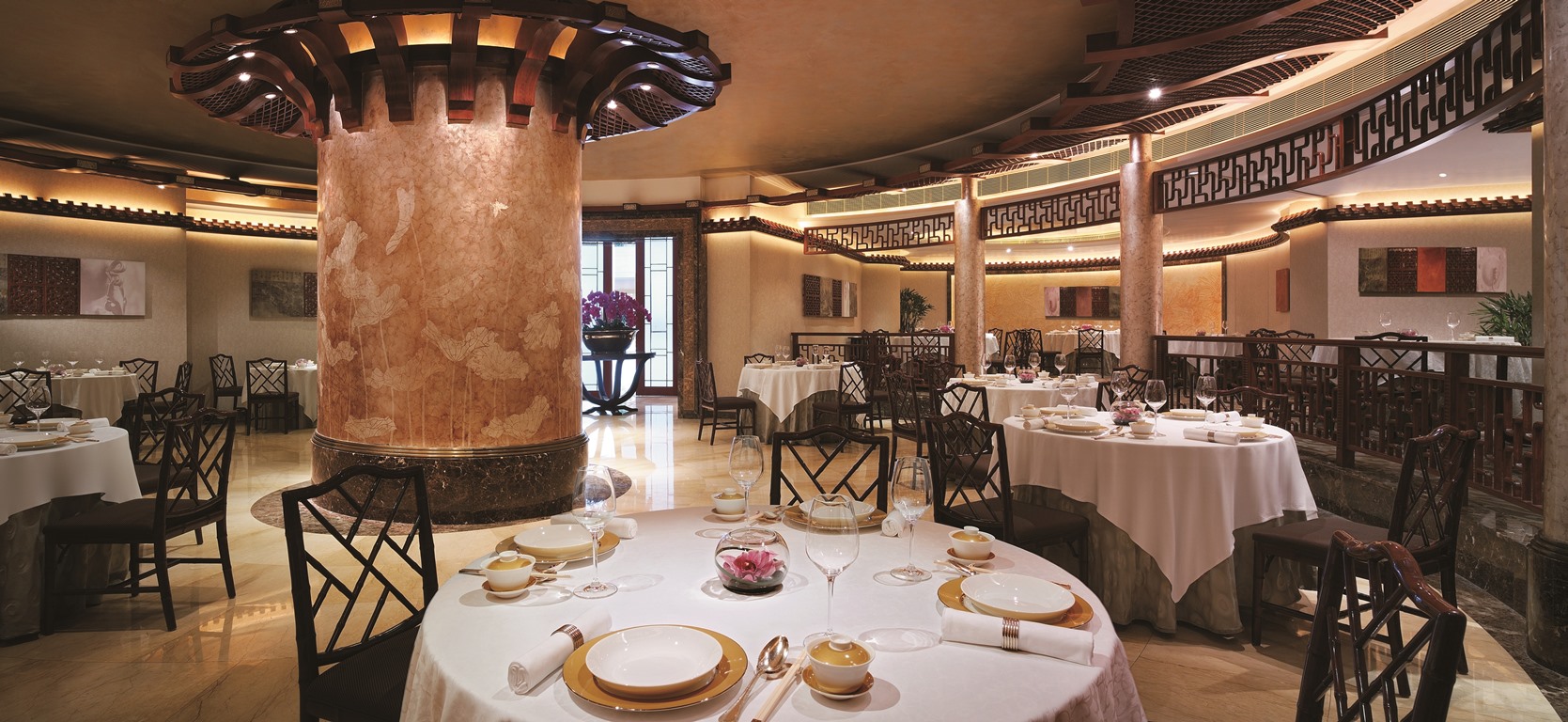 无暇美玉代表美好和高贵。在玉餐厅,像品味玉一样享受中国美食。精品粤菜,正宗口味,另有资深茶师演绎优雅茶道。一品茶、一味菜,相映成趣,相得益彰。主用餐区格调明快、典雅,充满现代风格。7间包房各具特色,融合古典和现代之美。