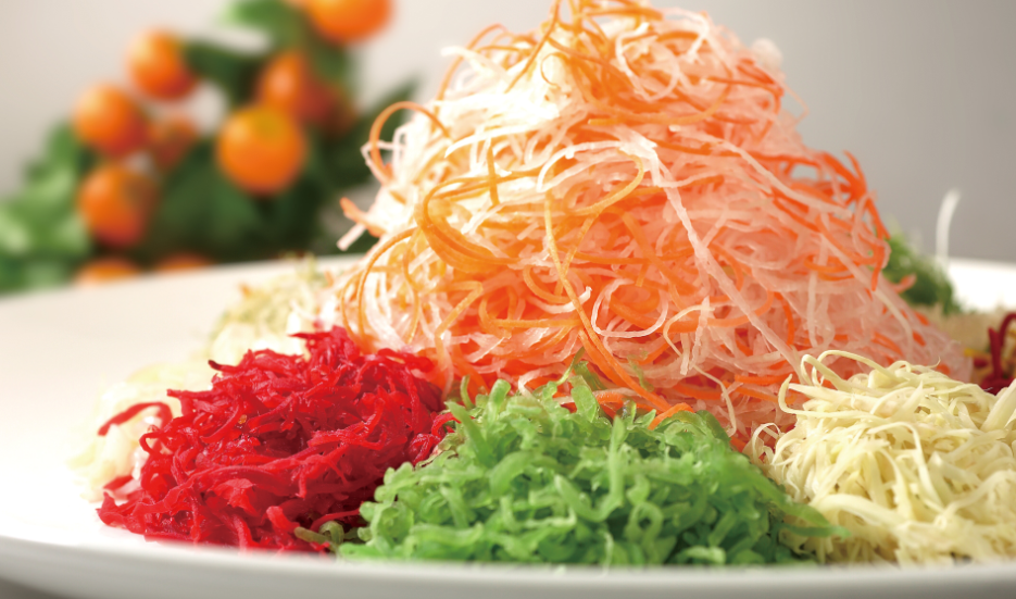 悦庭主厨亢京蓬师傅携其精英团队精心打造传统佳节庆典美食,让您与家人、朋友齐聚一堂,共享欢愉。作为吉祥菜品之一的风生水起(捞鱼生),源于东南亚农历新年盛行的饮食文化,每种食材代表一种好意头,亲朋好友齐举筷共捞起,祝愿来年心想事成,如意吉祥。