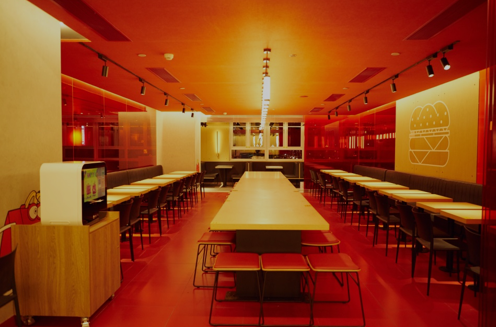 若选择传统点餐,小巧独立的点餐柜台,让顾客与接待员距离更近,沟通更容易。菜单和取餐牌使用动态电子屏幕,信息一目了然。此外,双点式柜台将点餐和取餐清楚划分,不仅服务更快,还满足了手机订餐、外卖服务的需要,为数字化餐饮、O2O闭环奠下基石。