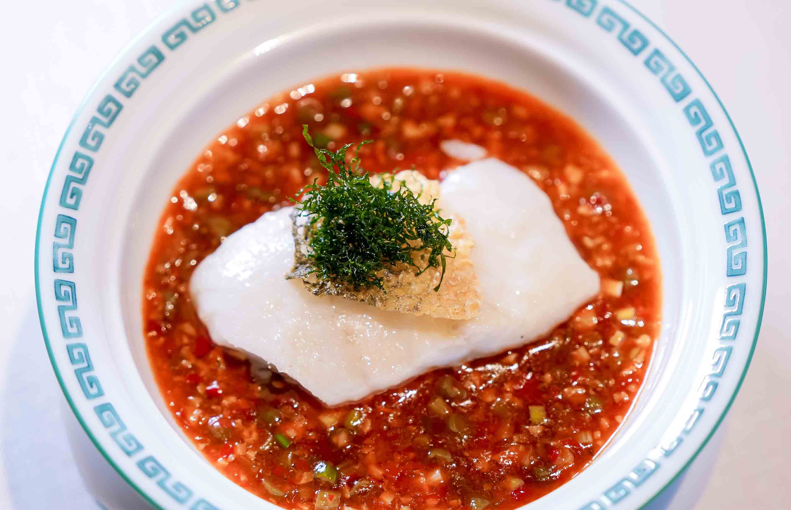 选用陕西临潼火晶柿子,刚送到餐厅时口感较脆,放置至刚成熟不久是最佳时期,不能太生,也不能太熟,太生了没有柿子滑糯的口感,太熟了味道会过甜。制作时没有特别处理柿子,只是控制其甜度,直接取果肉来用。让鱼子酱的颗粒、柿子的润滑、炸牛蒡丝的酥脆,一同增加菜品的口感层次。