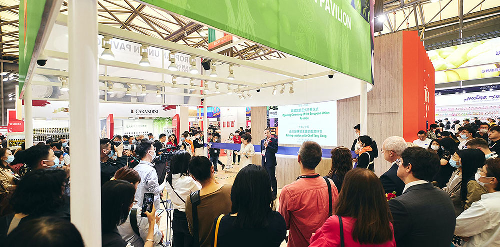 除了坚持不懈地以“源自欧洲的色彩”活动向中国买家和消费者介绍欧洲食品饮料具有较高标准的安全性、高品质、真实性以及可持续性,2021 中食展的欧盟馆也借机庆贺了中欧地理标志(GI)协议的达成。